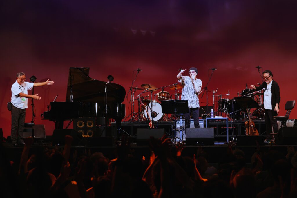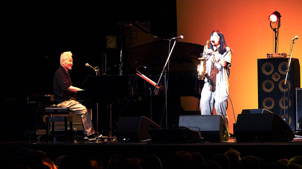 今年はシカゴで活躍するピアニスト、有吉“アリヨ”須美人がゲスト参加。転がるピアノがブギに燃料を注ぎ、会場は一気に加速。前田サラはアクションを交え激しくブロウ、すっかり“バンドの顔”。見つめるアリヨの眼差しが温かい。