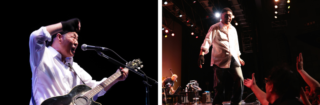 〈野良犬〉〈心はマ・ル・ハ・ダ・カ〉、「死ぬまで歌い続けるぞ」とシャウトする〈君といつまでも〉から〈嫌んなった〉へ。“キムロック”の進化を感じさせるステージだった。