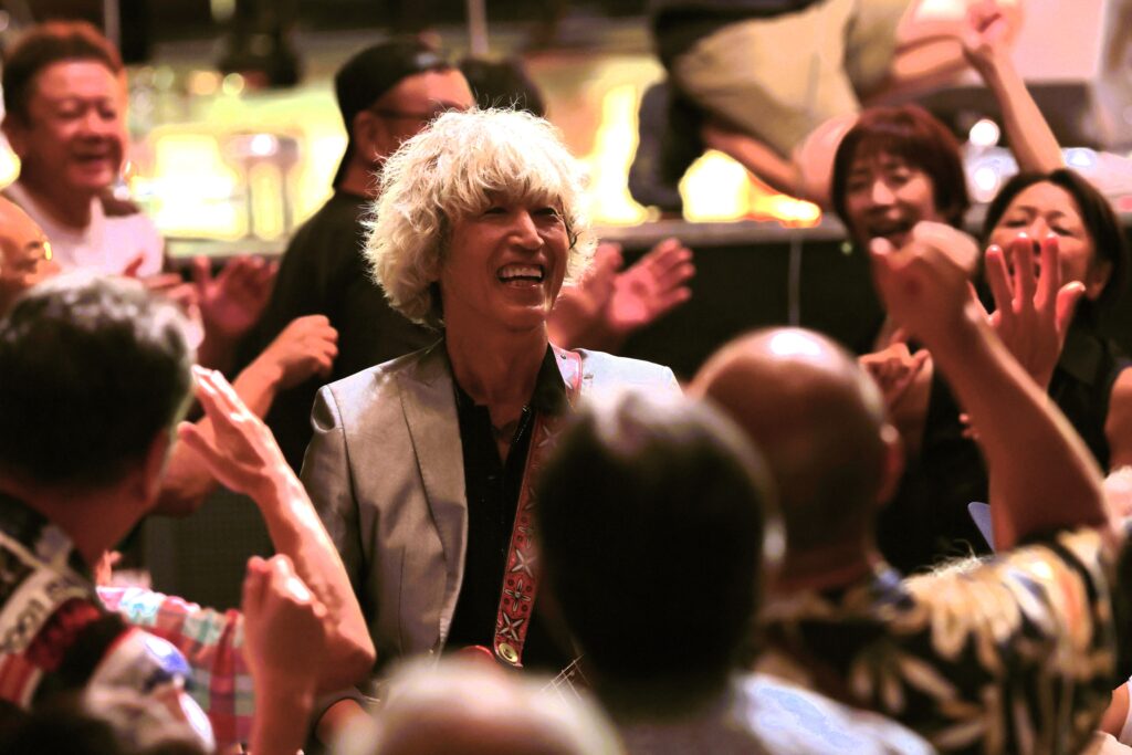 一転、愛らしくユーモラスな伊東のMCに、関西の観客も自然と心を開く。〈これさえあれば〉から、「最後は皆さんのご健康とご多幸をお祈りし、地球上から憎しみと哀しみが減りますように。人生の応援歌、〈泪橋〉!」 ピリリとした情景から、明日は陽が差すと信じさせる歌。折に触れ、聴き継がれていくだろう。
