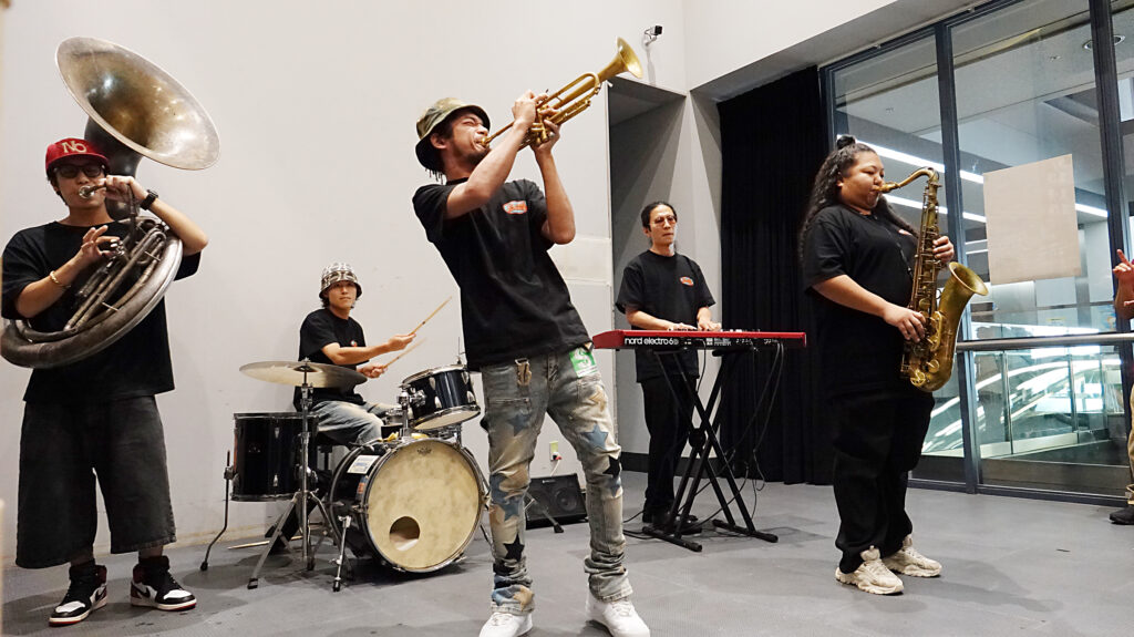 昨年もWelcome Artistとしてロビーを沸かせた彼らは、階下のmusic bar S.O.Ra.のイベントから生まれた、ニューオーリンズのエネルギーを強烈に感じさせるユニット。昨年からのファンも少なくない。今年はLit Line Swingersのメンバーを中心にした構成で1日目と3日目に登場。ファンクの骨太さと確かなメロディで、集まった人をぐいっと掴んでいた。