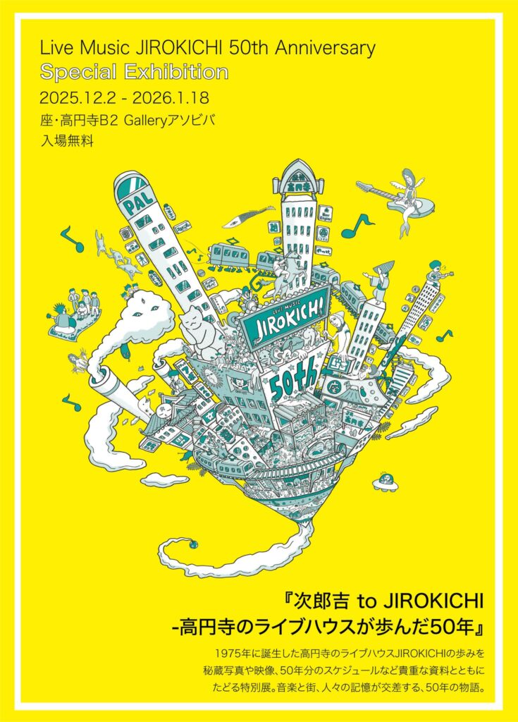 1975年に誕生した高円寺のライブハウス JIROKICHI の歩みを、秘蔵写真や映像、50年分のスケジュールなど貴重な資