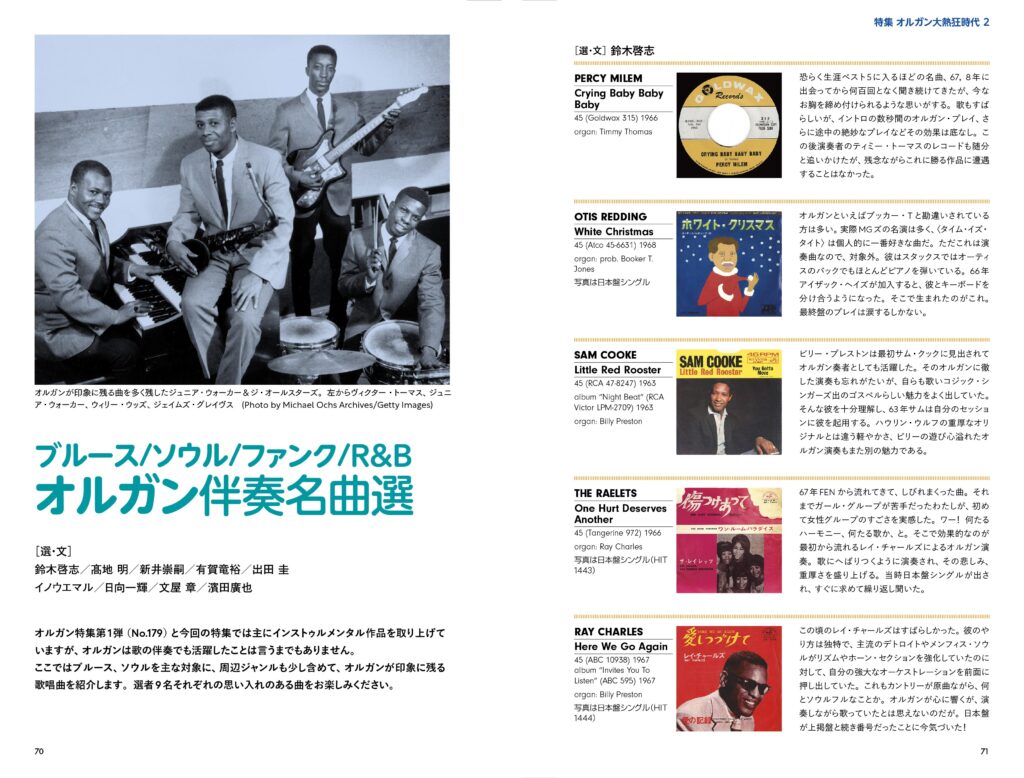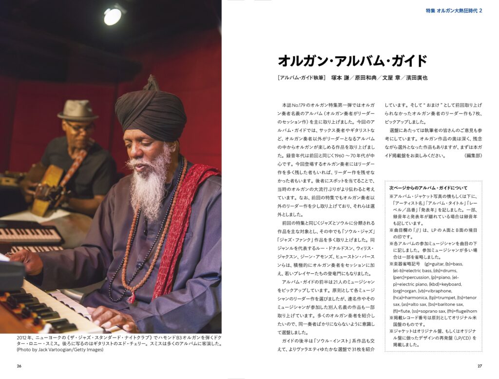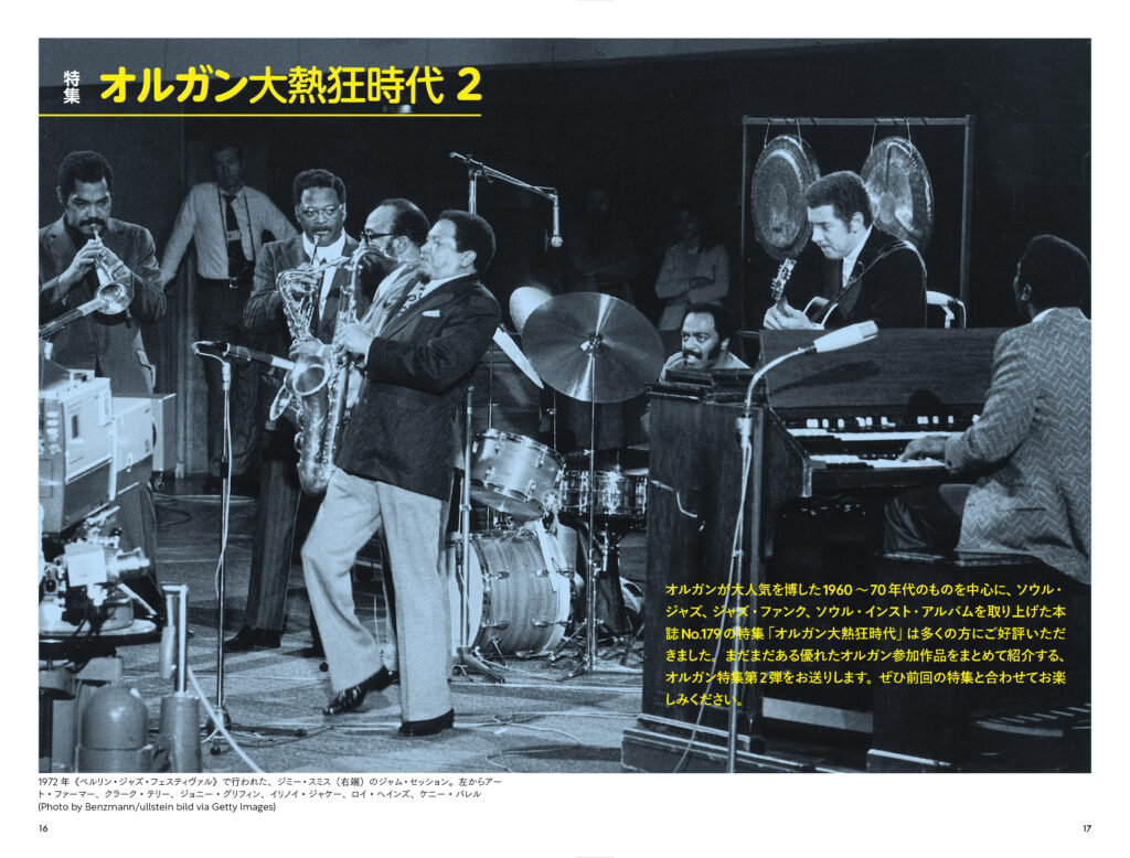 オルガンが大人気を博した1960~70年代のものを中心に、ソウル・ジャズ、ジャズ・ファンク、ソウル・インスト・アルバムを取り上げた本誌No.179の特集「オルガン大熱狂時代」。第一弾ではオルガン奏者名義のアルバムを主に取り上げました。