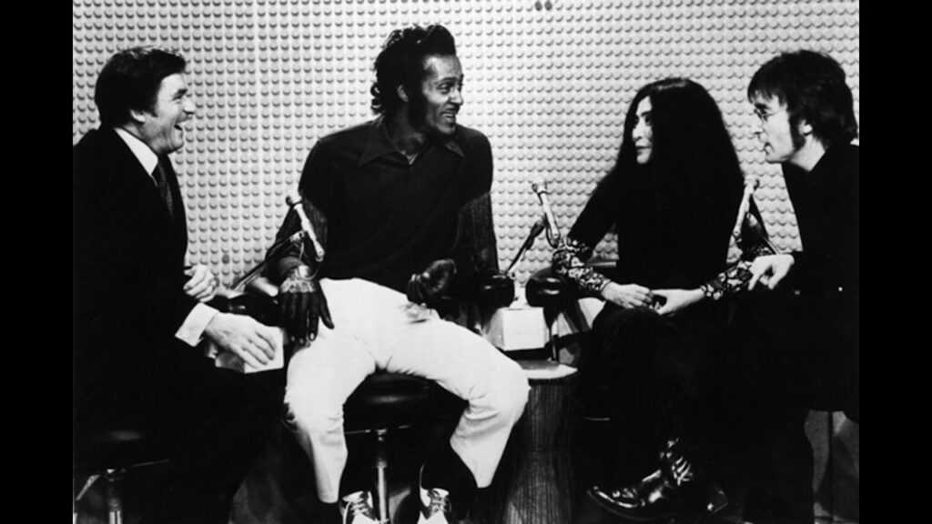 ビートルズ。更に、1999 年のポール・マッカートニー:ライヴ・アット・ザ・キャヴァーン・クラブ(イギリス・リバプールで撮影された映像)の、ポール・マッカートニーが 「ブラウン・アイド・ハンサム・マン」 をカバーしたパフォーマンス。「チャックがいなければ、ロックはない」というポールの言葉が被さる。